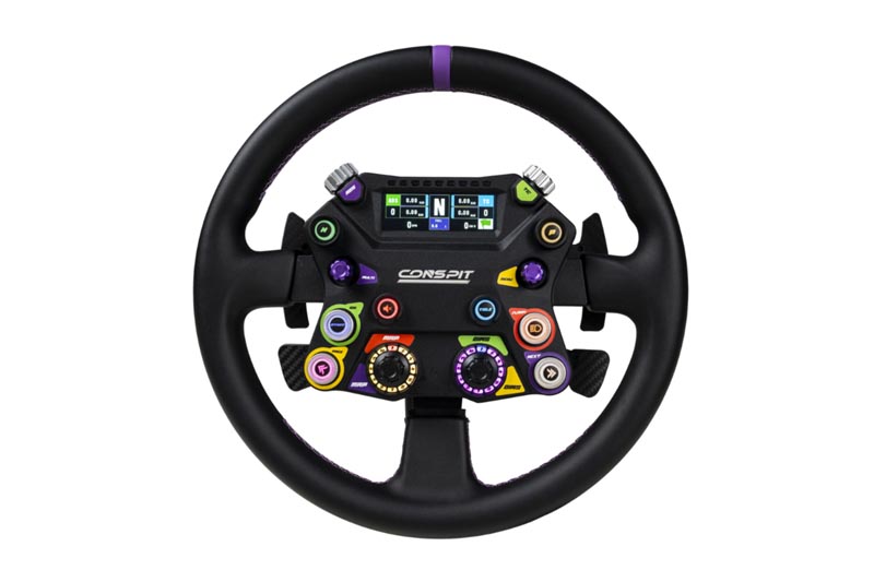 8 anpassbare RGB-Tasten – taktil und reaktionsschnell: Mit einer Betätigungskraft von 500 g und einem kurzen Hub bieten diese Tasten eine präzise Eingabe. Die vollständige RGB-Beleuchtung funktioniert mit CONSPIT Link 2.0 und SimHub für eine dynamische Telemetrie-Visualisierung.
