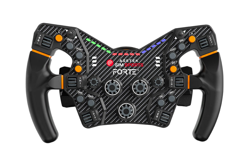 nspired by real-life formula cars, the Asetek Simsports® Forte® Formula Steering Wheel has been thoroughly designed by racers and sim racers alike to live up to the feeling of real-life racing, and at the same time adopting sim racing feedback. With this and other feedback in mind, we started from the ground up and a clean sheet of paper on a mission to create the best possible sim racing formula wheel, but like our other products, without breaking the bank. We are pleased to say that we achieved just that – please meet the Forte® Formula steering wheel!