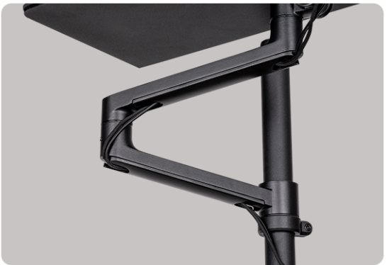 Die KEYBOARD & MOUSE Ablage ist mit einem speziellen Bereich für das Kabelmanagement unter der Ablage ausgestattet und hilft Ihnen, Ihren Arbeitsplatz aufgeräumt und organisiert zu halten, indem Sie die Kabel sauber von Ihrem Arbeitsbereich wegführen.