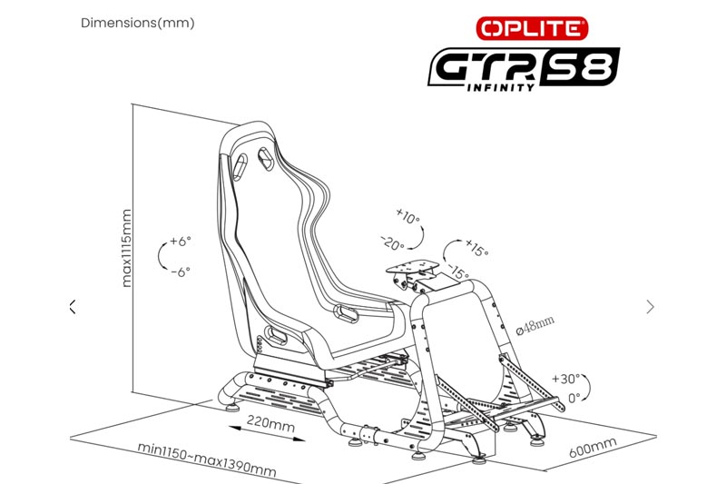 Das OPLITE GTR S8 Infinity-Simulationscockpit kombiniert die neuesten Fortschritte der Marke in der Simracing-Technologie mit einem zeitlosen, von der Welt des Rennsports inspirierten Design.Seine Struktur aus hochverdichtetem Karbonstahl mit einem Durchmesser von 48 mm garantiert optimale Steifigkeit, und die Montageplatten gewährleisten die vollständige Kompatibilität mit Lösungen führender Marken wie Fanatec®, Moza®, Thrustmaster®, Logitech®, Turtle Beach® oder Asetek®. Mit einer breiten Palette von Einstellmöglichkeiten bietet dieses Cockpit ein ergonomisches Cockpit, das für eine Vielzahl von Fahrmodi geeignet ist, darunter GT, Drift, F1 und Rally.
