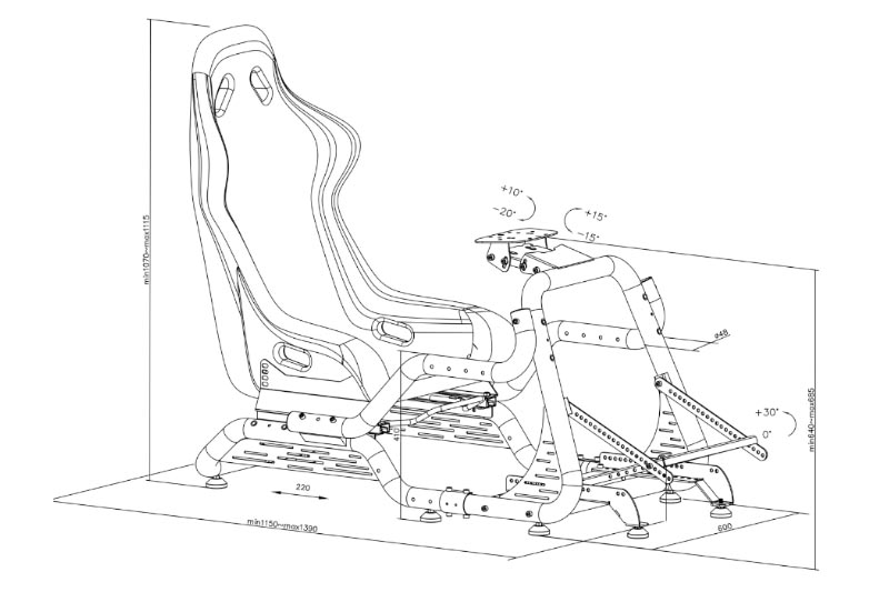 ✅ Höhen- und neigungsverstellbarer Lenkradsockel, kompatibel mit Force Feedback Direct Drive und Courroie Technologien.