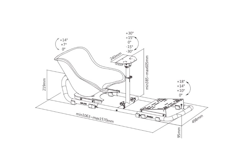 2 mm dicke Lenkradhalterung bietet 5 Neigungspositionen -30°/ -15°/0°/+15°/+30° und eine Höhenverstellung in einem Bereich von 21 cm.
