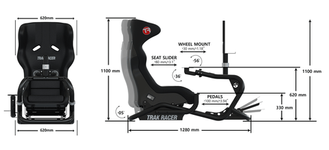 The Trak Racer TR8 is a fully adjustable gaming machine. Featuring a single monitor stand with console shelf and very study rig with adjustable pedal plate and wheel mount suitable for Direct Drive. The TR8 is predrilled for all the big name brands in Peripherals.