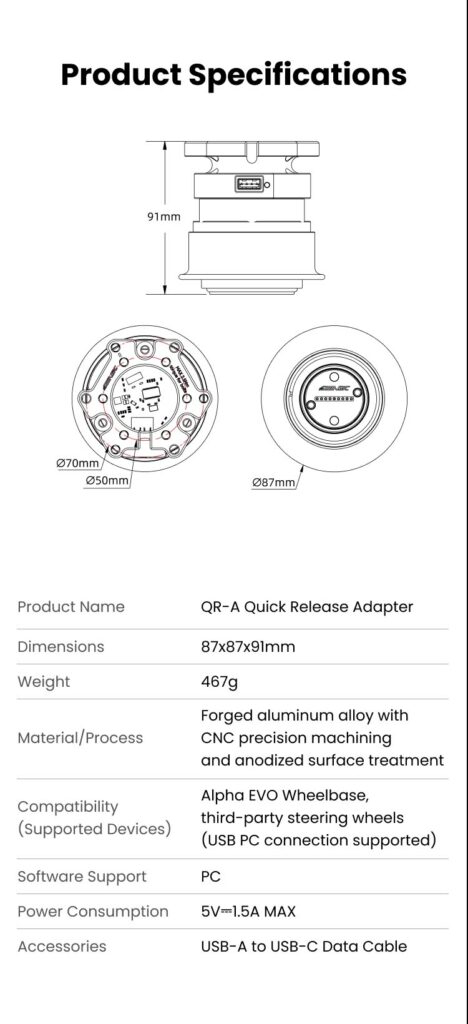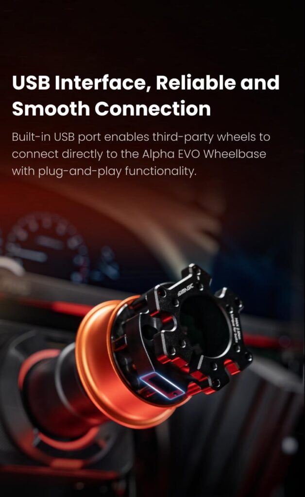 Montieren Sie nahtlos Lenkräder von Drittanbietern mit einem Standard-Lochbild von 70 mm auf Alpha Evo Wheelbase.