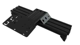 The pedal baseplate is made out of thick carbon steel and has pre-drilled holes for all major brand pedals (see list below) and slots for left/right adjustment with Heusinkveld pedals and others. The pedal plate can be angle adjusted with the locking lever and moved forwards and backwards. This bracket is compatible with the following pedals (and more) :