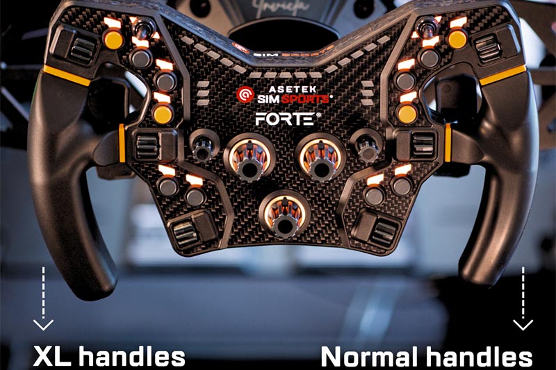 You know what they say about people with big hands? They require XL handles for their steering wheels! Gone are the days of settling with an uncomfortable driving positions. Change the ergonomics of your Asetek SimSports® steering wheels with the XL handles. Compatible with all Asetek SimSports® Formula style steering wheels.